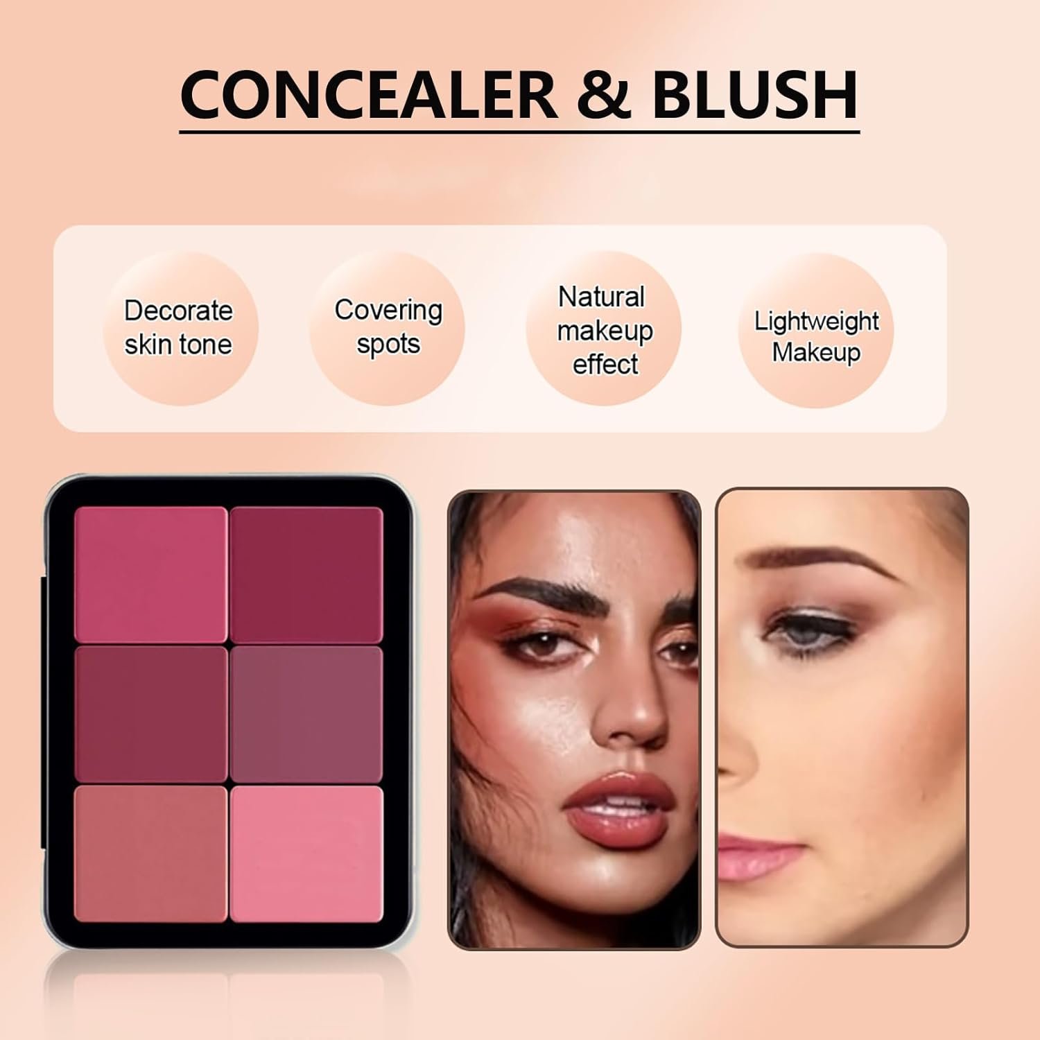 Professional Makeup Cream Contour Blush Palette, 6 Colours Concearler + 6 Colours Blsuh Full Coverage & Makeup Brush Set, Face Make Up Gift for Women Girls, C