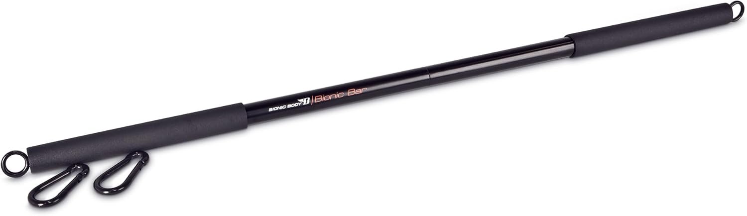 COMPATIBLE WITH ALL RESISTANCE BANDS: Made to fit all resistance bands/tubes with a clip, this bar intensifies your training by allowing you to perform various exercises and routines. It is recommended to be used with a Bionic Body resistance tubes.