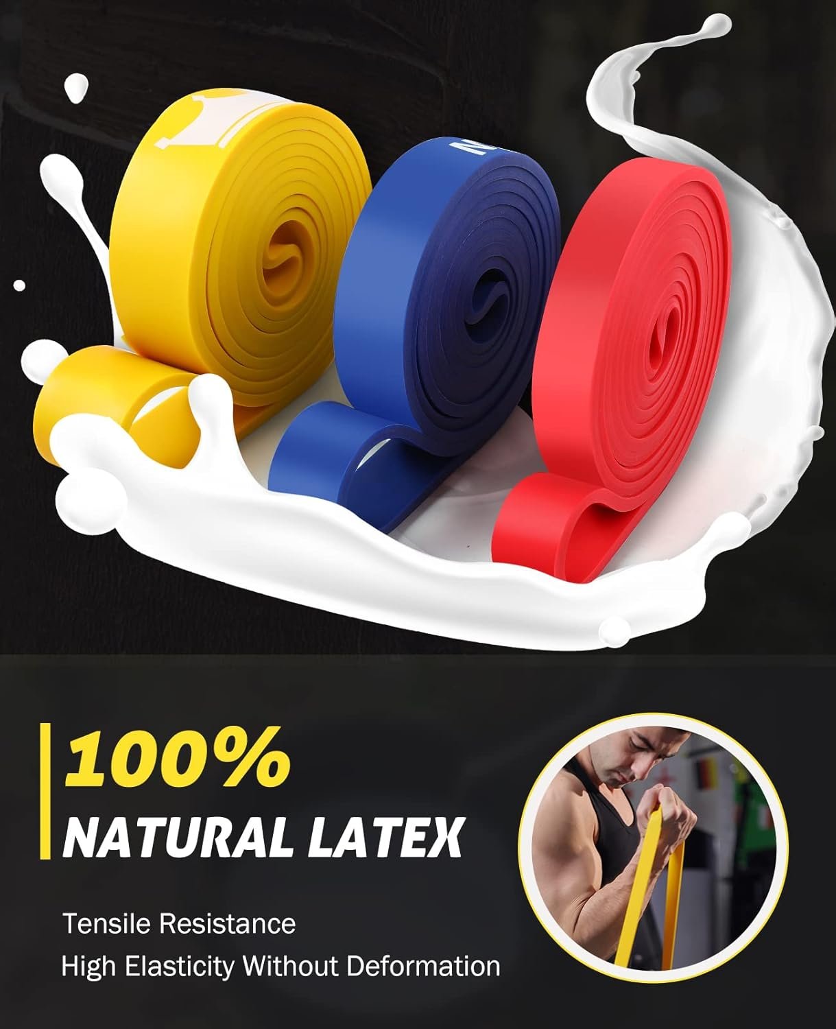 Durable Eco-friendly Natural Latex: These pull-up assistance bands are made of 100% natural latex, which is healthy, odorless, and features excellent rebound With 6 times the stretch capacity, they are resistant to breaking and extremely durable The bands have been tested hundreds of times and retain their elasticity without deformation