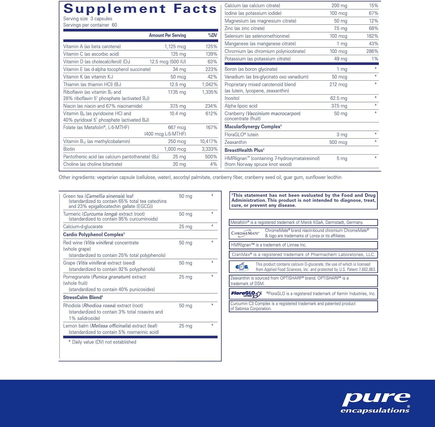 Overall Multivitamin Support: Women’s Nutrients multivitamin capsule is designed to support breast cell health, eye integrity, and urinary tract health*