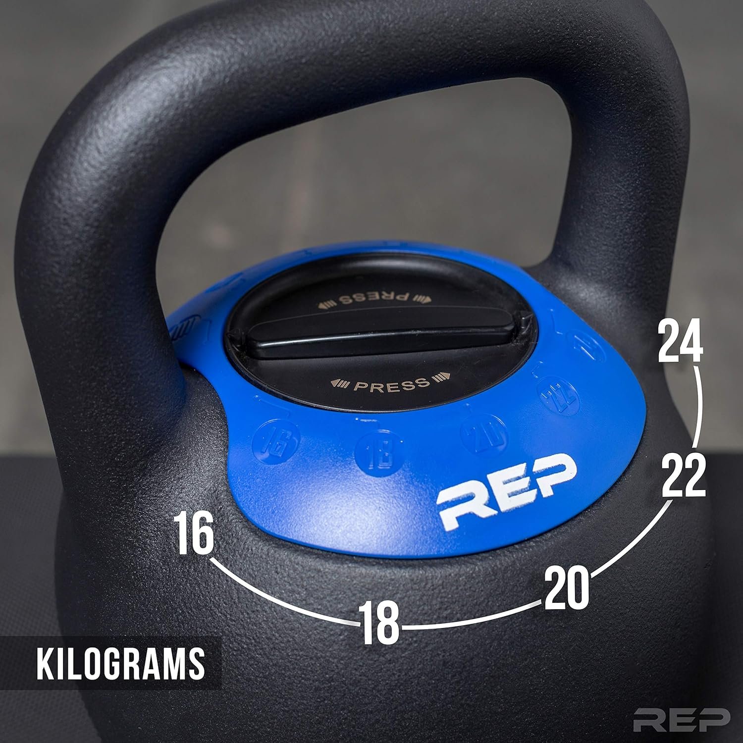 SELECT YOUR WEIGH FAST: The Rep Fitness Kettlebell adjusts more quickly than any other on the market. Simply push down and twist to select the resistance that you need for your workout. Each kettlebell has 5 different weight settings to replace 5 different kettlebells.