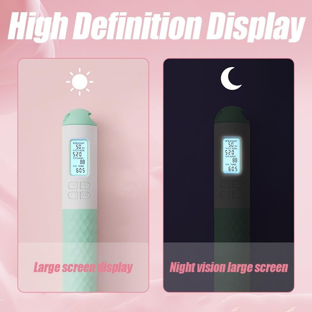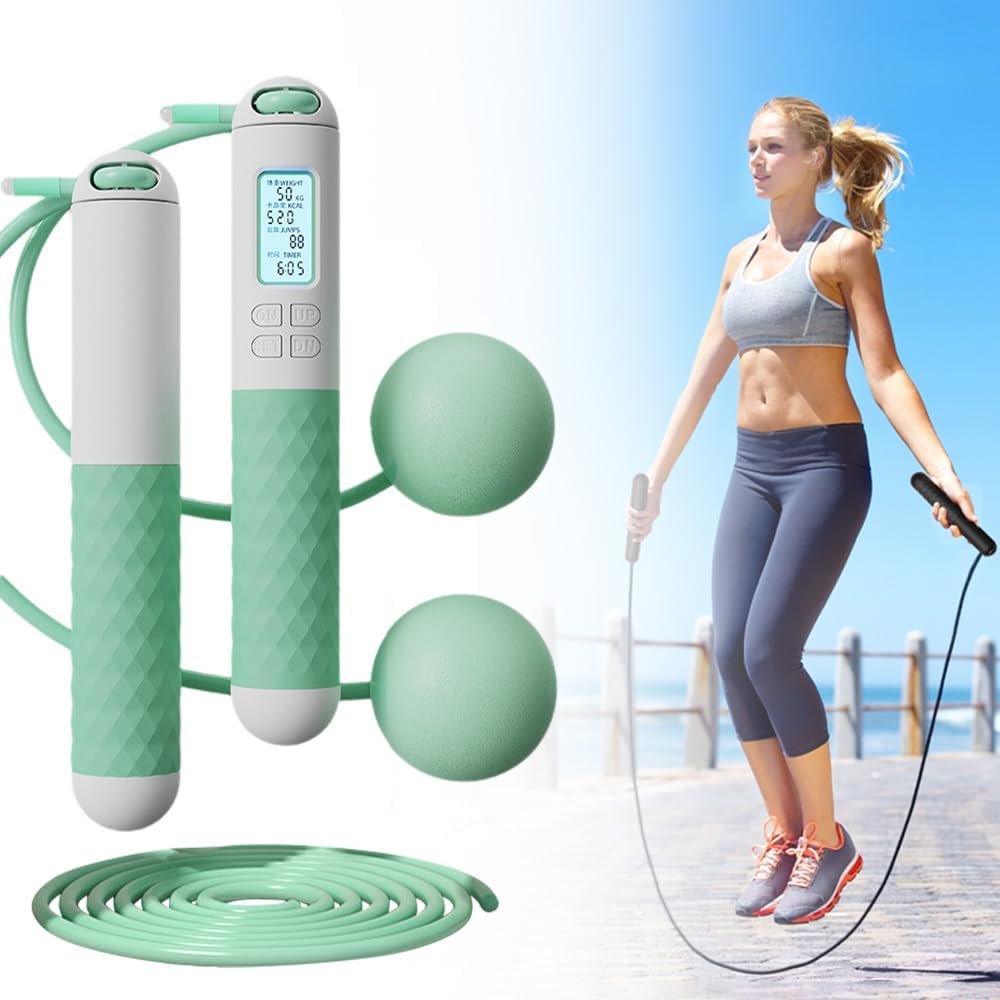 Skipping Rope with Counter. Featuring an easy-to-read LCD screen displaying jump count, time, and calories burned. Equipped with advanced counting sensors, this jump rope ensures highly accurate jump counting, aiding in progress tracking and goal achievement effortlessly.