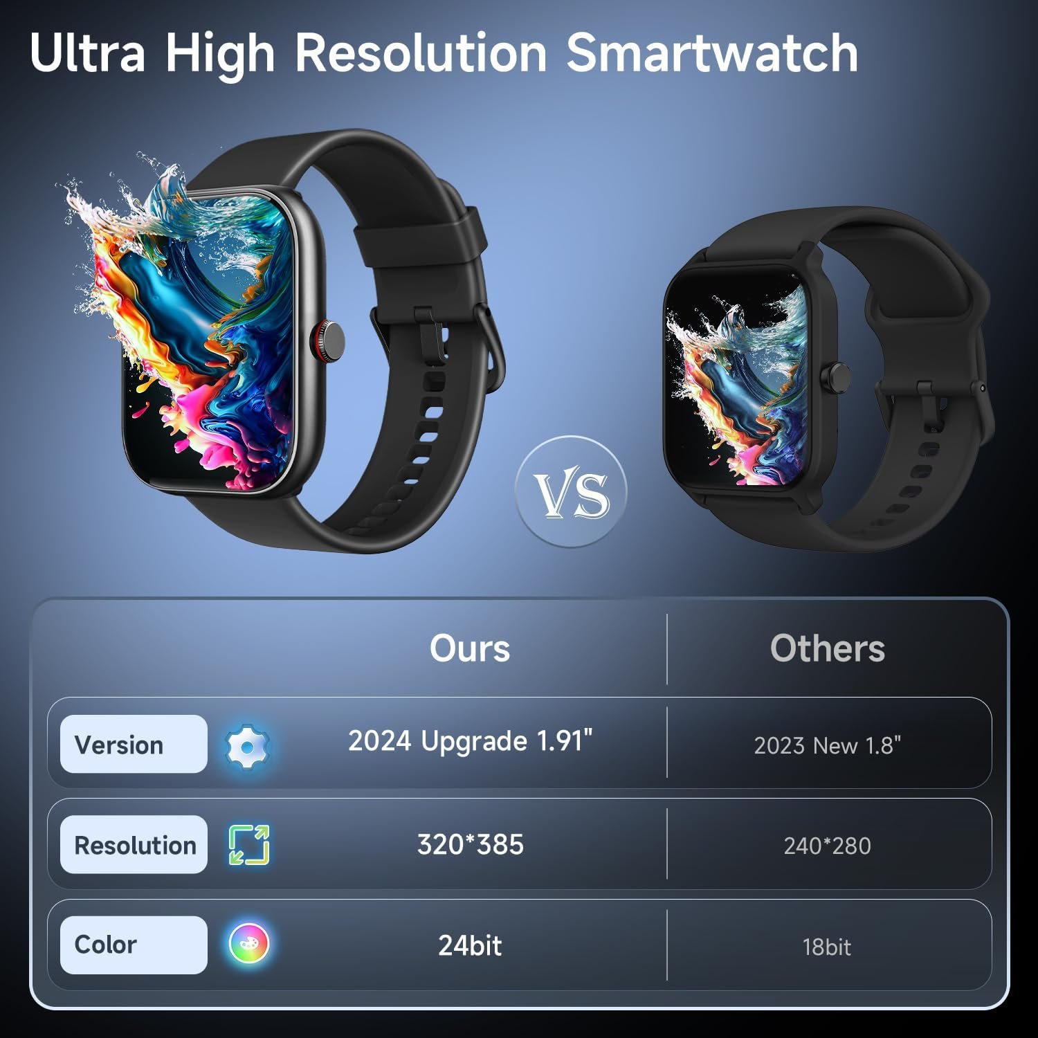 1.91″ HD Display Screen: This smart watch for women men is equipped with 320*385 resolution and a 1.91” HD colorful screen, delivering a clear picture and highly responsive touch sensitivity