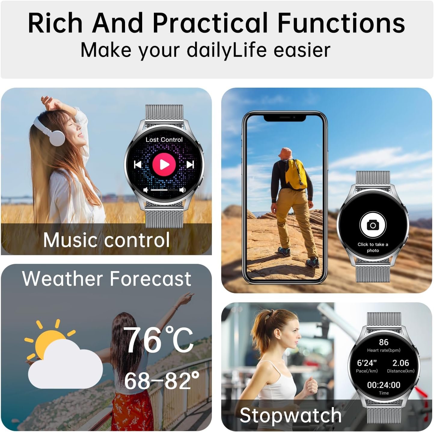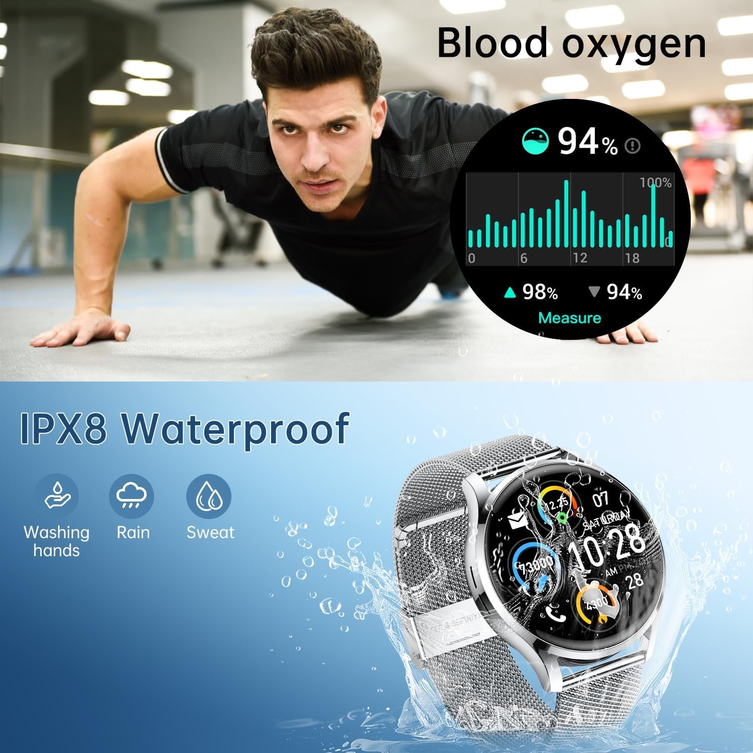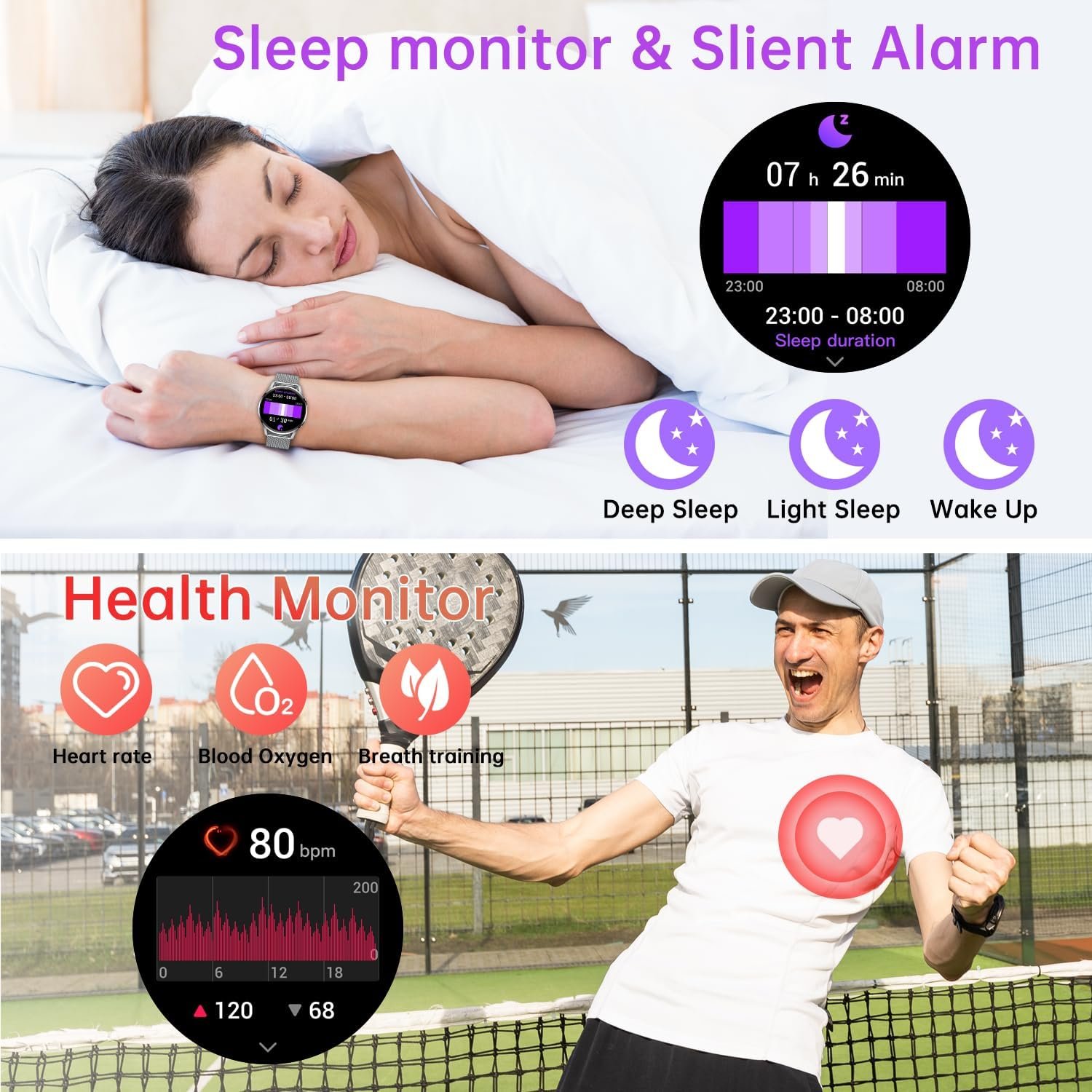 Smartwatch with heart rate monitor and sleep tracker: Smart watches for men women adopted advanced optical sensors, allowing pedometer watch to collect health data more accurately,ios android smart watch provides health monitoring features such as heart rate, blood oxygen (Sp03),and Sleep Monitoring(Deep/light sleep), helping you better understand your health and making a reasonable adjustment to your lifestyle