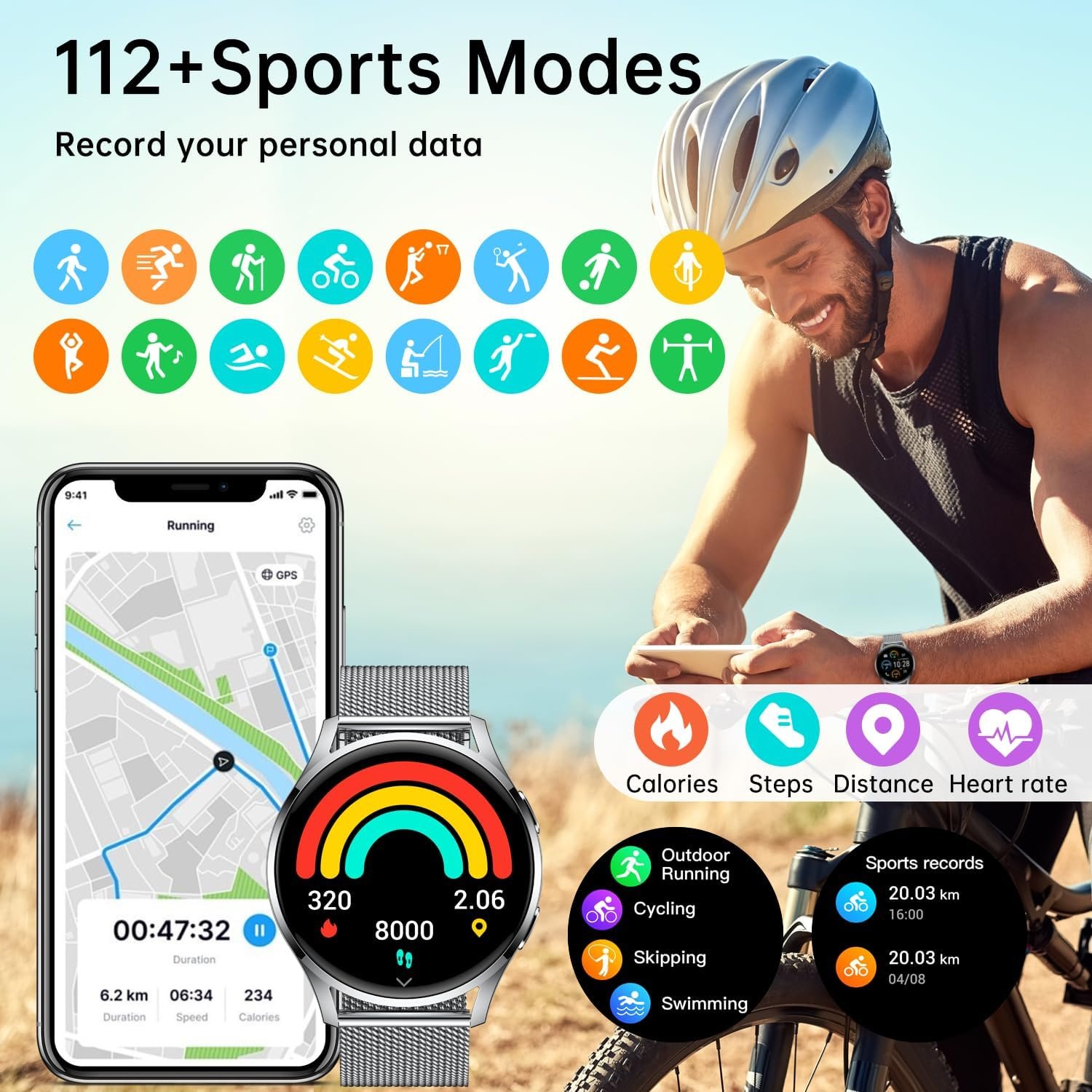 Fitness watches for men women & 112 Sport Mode: Digital watch men women supports 112+ sports modes such as walking, running, cycling, and soccer, and you can visually read sports data (steps, distance, calories, etc.) on the smart watch. Fitness tracker watch for men women is IPX8 waterproof,you can wear it during outdoor activities, rainy day, washing hand.Note: This waterproof watch can obtain GPS positioning through your mobile phone and clearly upload your movement path