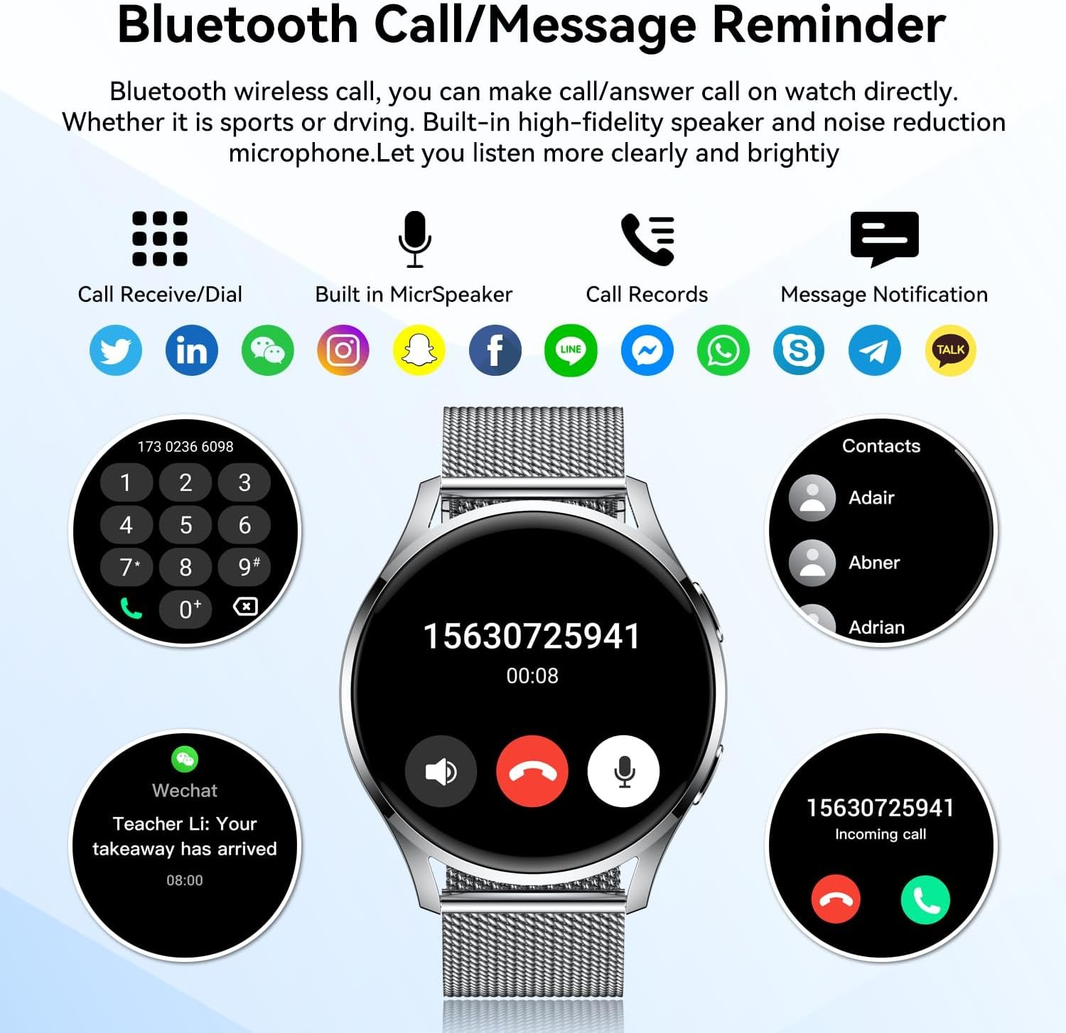 Smart watch with text and call – ios android smart watches for men women is equipped with a clear speaker,running watches can directly use womens mens watch to answer make calls/read messages/play music/store contacts.You can get notifications of calls, SMS and SNS messages, Whatsapp, text, facebook etc.Step tracker watch for women men can support most android and iOS phone(andriod 5.0 and above iOS 9.0 and above).Such as compatible with iPhone, Samsung, HUAWEI,etc