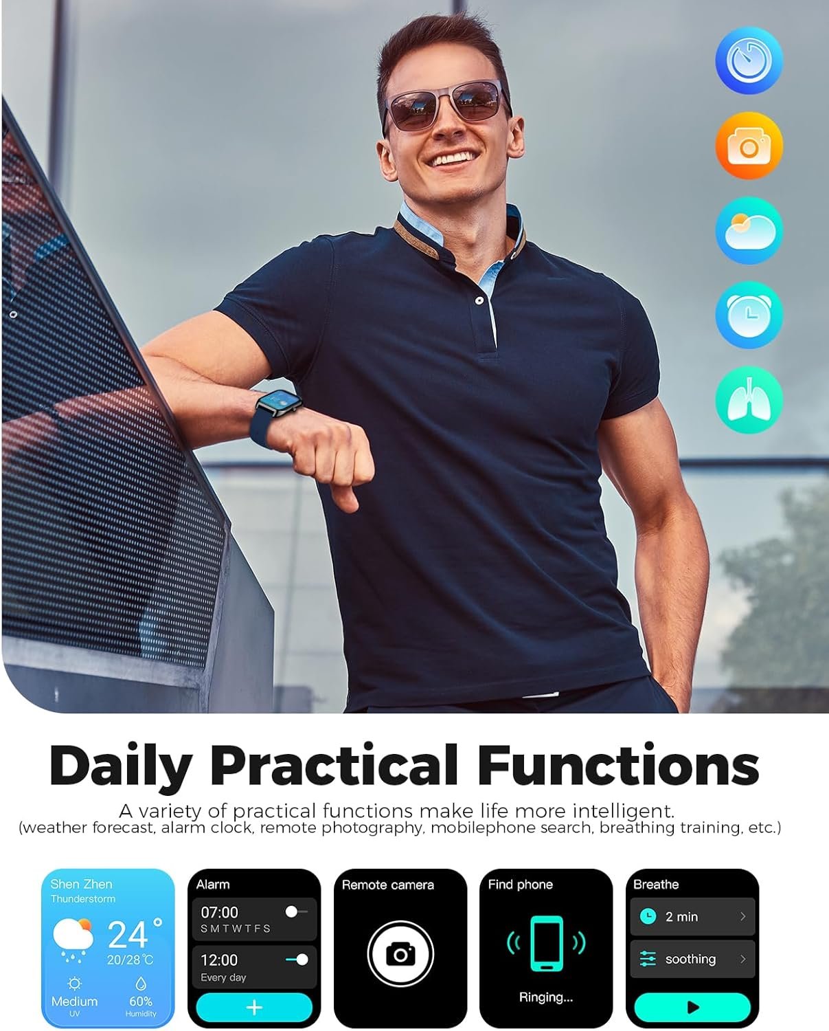 Multifunctional Features for Everyday Use — These smart watches come packed with tools like weather updates, music control, sedentary reminders, timers, alarms, flashlight, and phone locator. Designed for versatility, they make your daily routine smarter, catering to the needs of users looking for smart watches for men and women