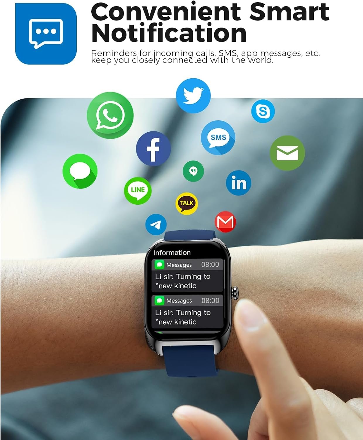 Bluetooth Calling with Real-Time Notifications — This android smart watch is equipped with Bluetooth 5.2, providing a stable connection for high-quality calls and notifications. Stay updated with alerts for SMS, Facebook, WhatsApp, and more. With a built-in speaker and microphone, this smartwatch makes communication seamless, making it ideal for smart watches for men and women
