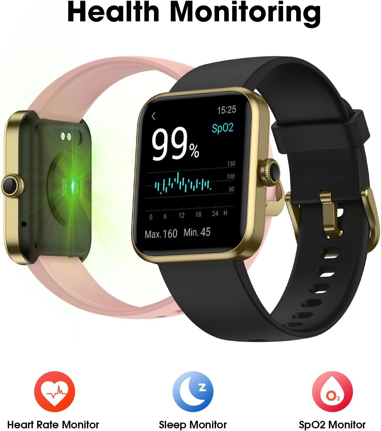 Gentle Reminders for You: Please do not wear the smart watch too tightly to prevent excessive friction that may cause skin abrasion. Give your watch a break after prolonged use. The watch cannot make calls or reply text.