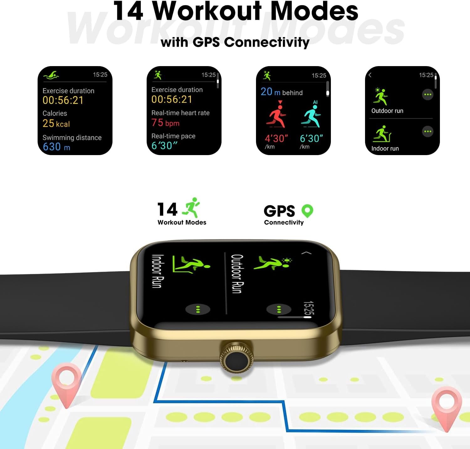 Mutiple Sport Modes with 5ATM Waterproof: Our fitness watch is equipped with 14 sports modes such as yoga, walking, ect, The smartwatch also tracks the outdoor workout route if connected with smartphone’s GPS. Imzuc watch is designed with 5ATM waterproof rating ( 50 meters waterproof ), so you can enjoy swimming or sweating out without any worries.