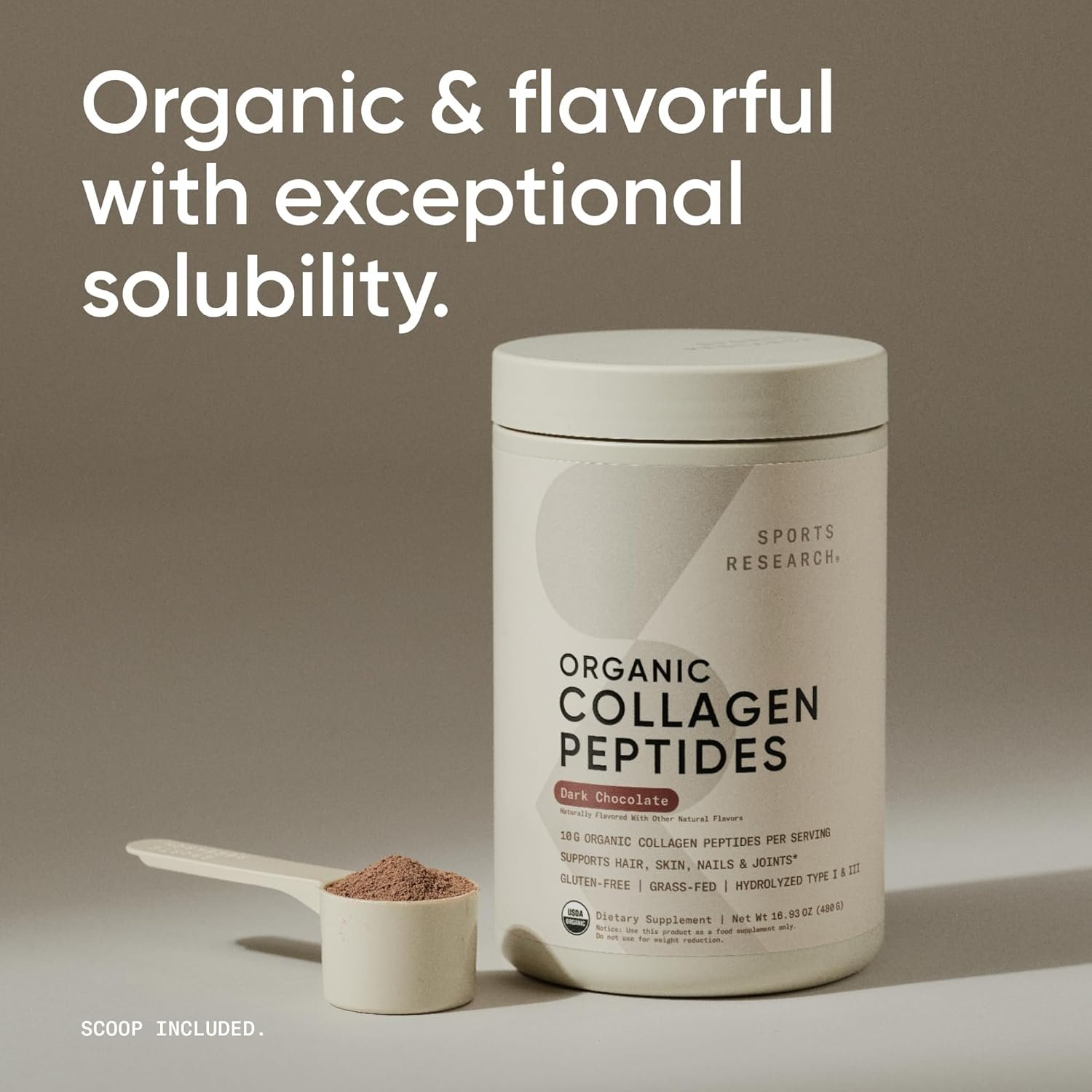 THE SPORTS RESEARCH DIFFERENCE: We hold our supplements to a higher standard. Sports Research Organic Collagen Powder for women and men is certified USDA Organic, NSF gluten-free, Non-GMO, and 3rd party Informed-Choice tested for banned and contaminated substances.