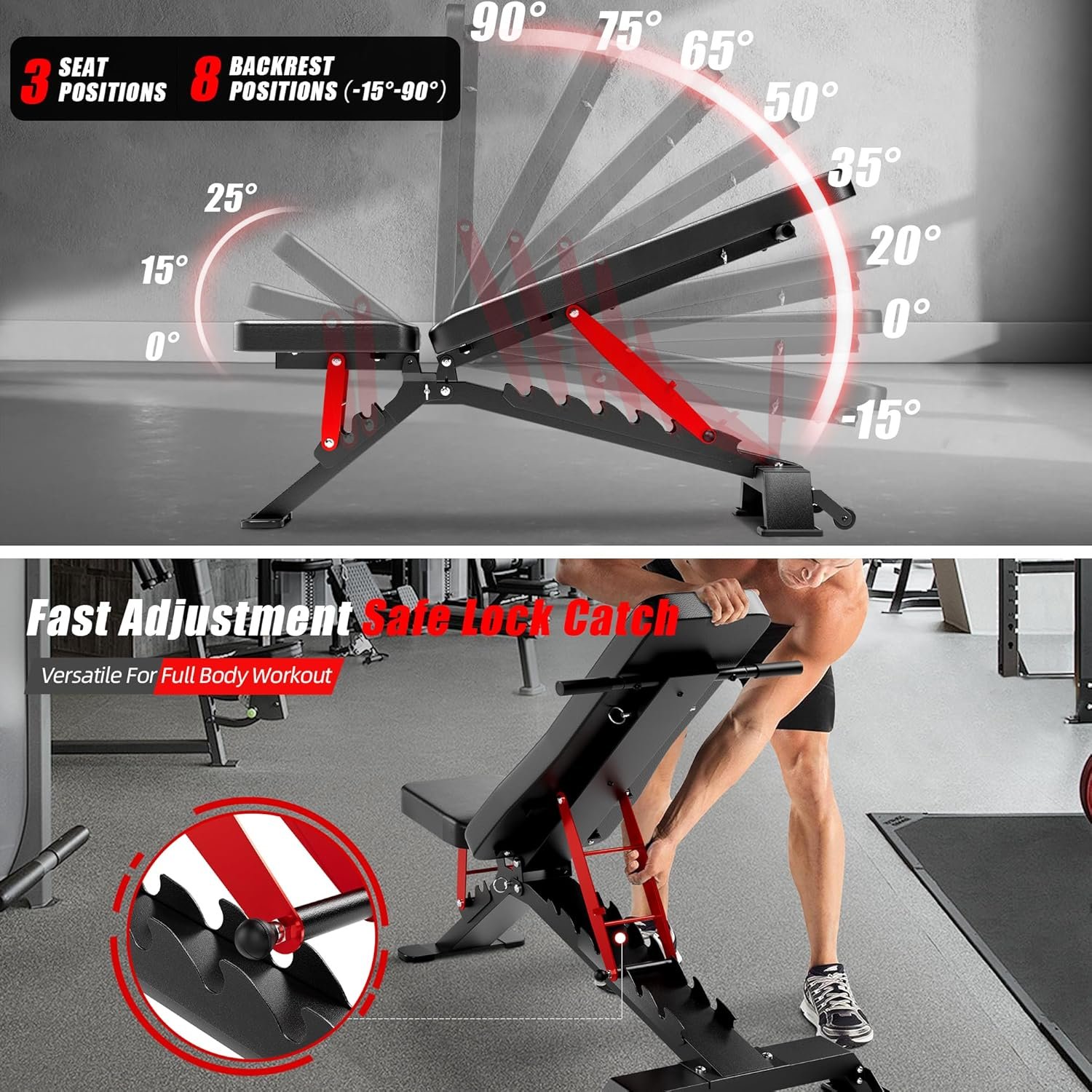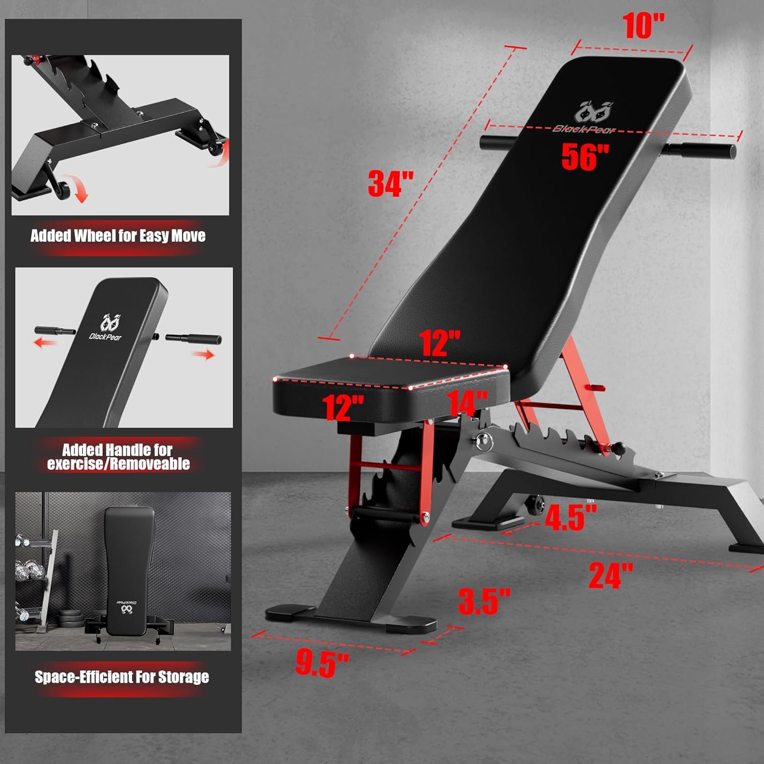 Compact and Versatile Design: Featuring a C-shaped lock catch for seamless adjustments, this bench offers 8 backrest positions and 3 seat positions, enabling incline, flat, and decline workouts up to 90 degrees. Versatile enough for building strength, toning muscles, or maintaining fitness, the BlackPear workout bench is an ideal addition to your home gym.
