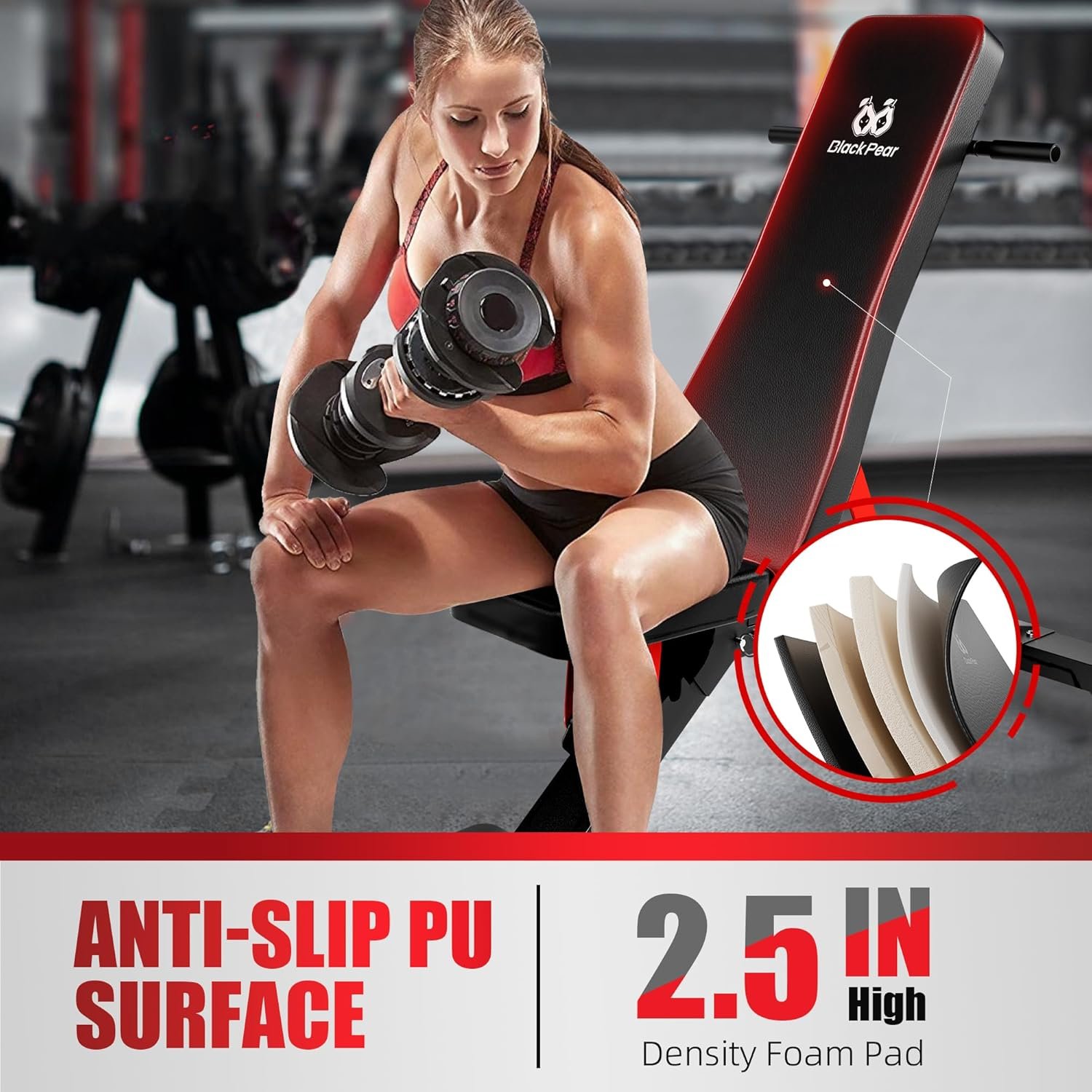 Satisfaction Service: At BlackPear, we are committed to providing user-friendly and affordable home fitness equipment. Our adjustable weight bench comes with a 1-year component replacement warranty and dedicated customer service for your peace of mind. Achieve your fitness goals with our commercial-grade workout bench in the comfort of your home gym.