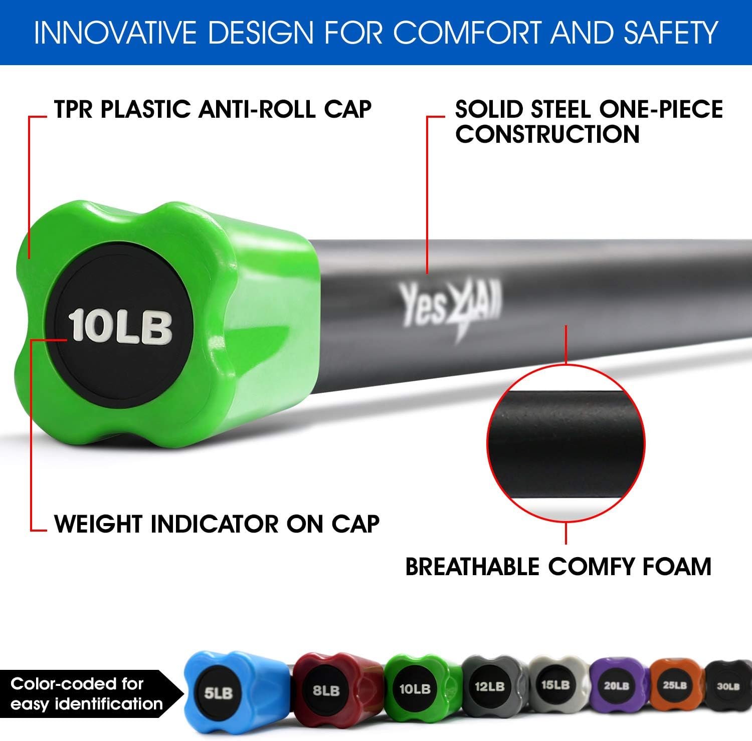 Yes4All Total Body Workout Weighted Bar, Resistance Band Bar, Weighted Bar Racks, Body Exercise Bar for Yoga, Strength Training in Home and Gym Single/Combo